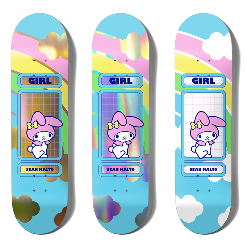Official Hello Kitty & Friends x Girl Skateboards collaboration item.