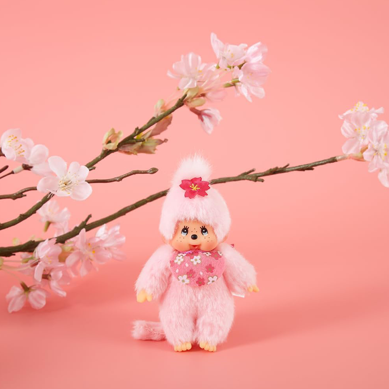 Add a touch of spring to your accessories with the Monchhichi Cherry Blossom Keychain. This plush charm features a cute Monchhichi in soft pink, complete with a matching cherry blossom hair clip and bib. Carry it with you for a pop of flowery cuteness wherever you go!