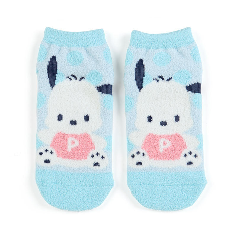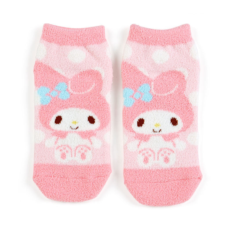 These fluffy socks are super comfy to wear! Each pair is styled after a Sanrio character and has a fun polka dot pattern!