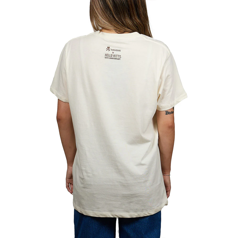 Get ready to party with Hello Kitty in the tokidoki x Hello Kitty 50th Anniversary Birthday Bouquet Tee! Featuring a fun screen print design, this cream tee showcases Hello Kitty in the center of a blooming bouquet on the front and the special collaboration logo on the back. Perfect for any Hello Kitty and tokidoki fan's wardrobe.